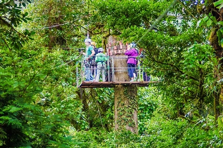 The only zip-line tour built entirely inside the cloud forest. In this tour, visitors cross through the unique cloud forest canopy suspended over the forest while attached to high-weight-capacity cables and using specialized climbing gear.
